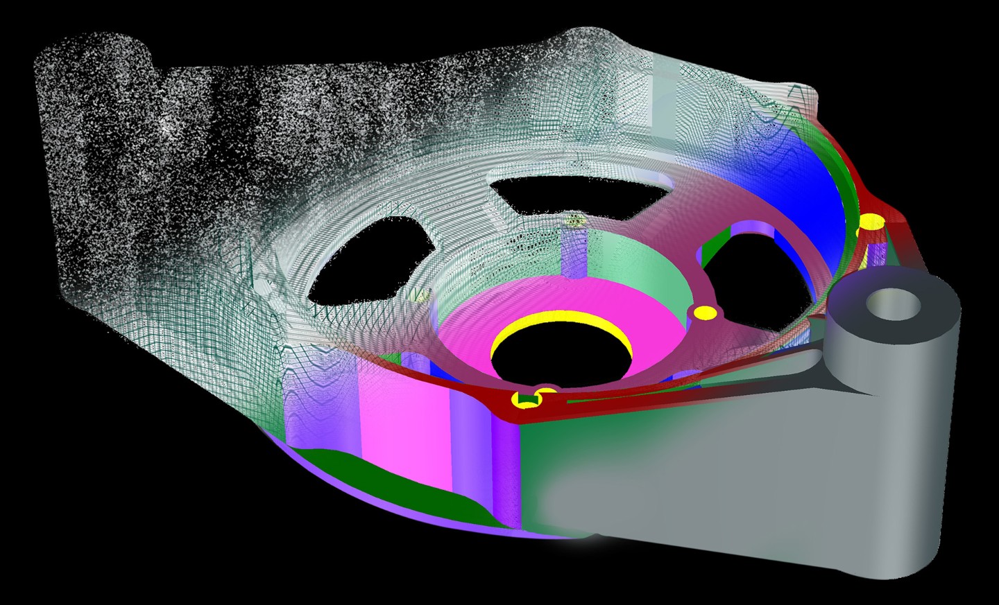 Der 3D-Scan virtualisiert physische Objekte als CAD-Geometrien in Form von Punktewolken oder vernetzten Oberflächen.