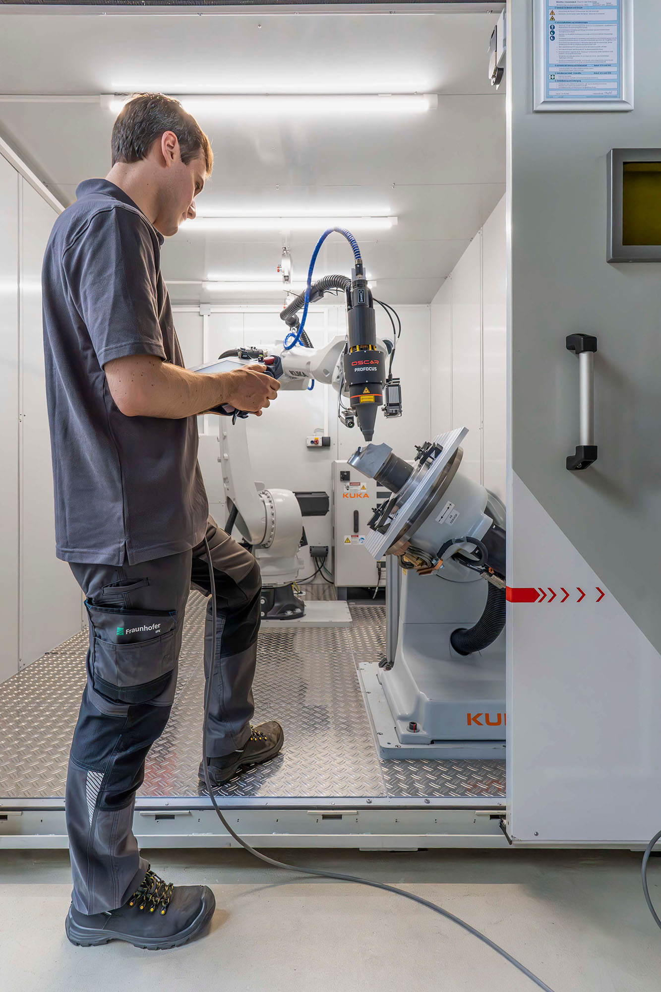 The welding system is equipped with an integrated scanner. This allows the component to be positioned in the system and digitized immediately. The scan data is then processed and the areas to be repaired are identified. The robot’s CAM paths are planned on the derived surfaces from the scan and finally transferred to the system. Welding can then begin immediately without any further changes.